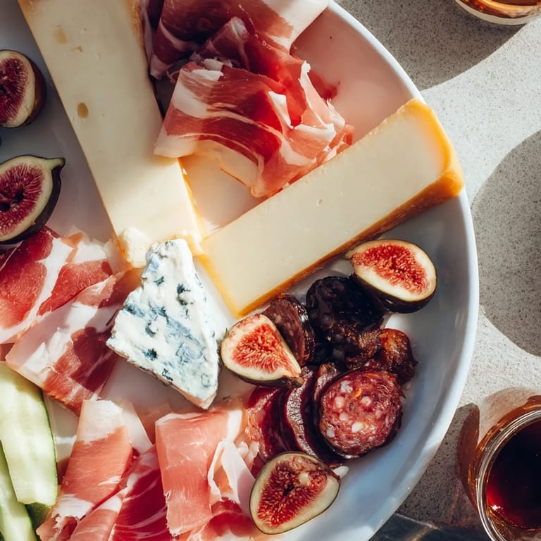 For a vegetarian version, omit all charcuterie and add marinated grilled vegetables or extra cheese varieties. You can drizzle honey over the board for added sweetness or swap the fig jam with quince paste to change up the flavor profile.