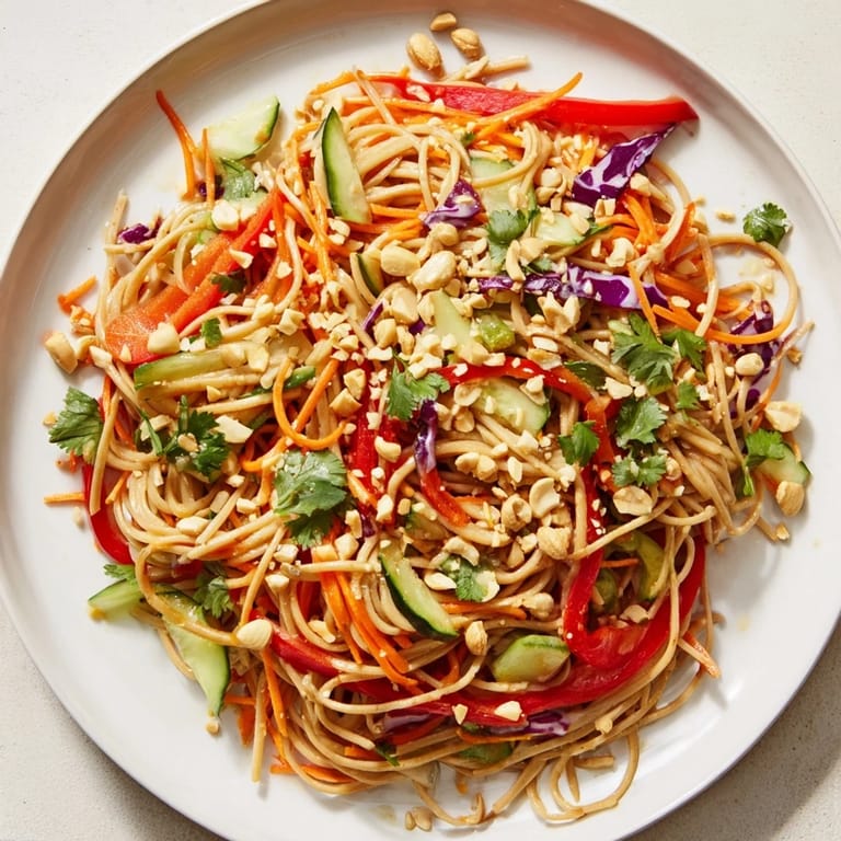This salad is naturally flexible about when you want to eat it. Serve it immediately while the noodles still have warmth and the vegetables are at peak crunch, or chill it for an hour and let all the flavors settle into something more cohesive and deep. I've brought it to picnics in a sealed container, transported it in my car, and even served it straight from the fridge at midnight when heat kept us all awake—it held up beautifully every time.