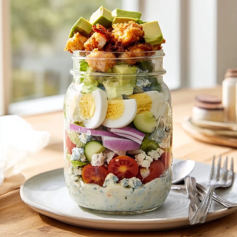 Save to Pinterest The first time I packed one of these jar salads for work, I felt ridiculously accomplished sitting at my desk at lunchtime. Something about those distinct layers visible through glass makes even a Tuesday afternoon feel special. My coworker actually asked if I'd ordered from some fancy meal delivery service. I just shook my head and watched her eyes widen when I shook that jar and everything transformed into this gorgeous, restaurant-worthy Cobb salad.