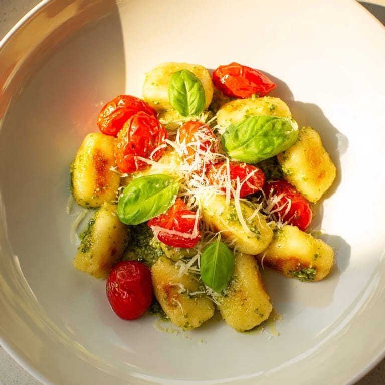 Save to Pinterest There's something magical about watching gnocchi transform in a hot pan—one moment they're pale and doughy, the next they're golden pillows with crispy edges that catch the light. I discovered this dish on a quiet Tuesday evening when I had a bag of fresh gnocchi sitting in my fridge and a handful of basil that was threatening to bolt in the summer heat. Instead of tossing everything into a pot of boiling water like I usually do, I decided to take a risk and pan-fry them instead. The sizzle when they hit the hot oil told me immediately I was onto something special.