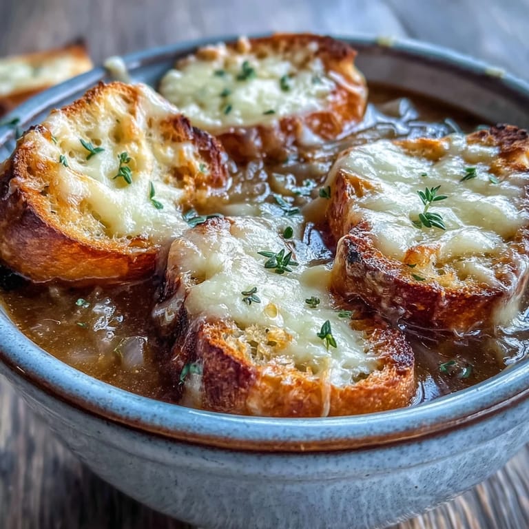 I made this for my sister after she'd had a terrible day at work, and watching her spoon through that golden broth with the crispy bread and pooling cheese somehow made the whole afternoon shift in her favor. There's something about handing someone a bowl of this soup that feels like saying 'I know things are hard right now, but let me take care of you for a moment.' She still texts me asking for it when she's stressed, which means more to me than any compliment about the food itself.