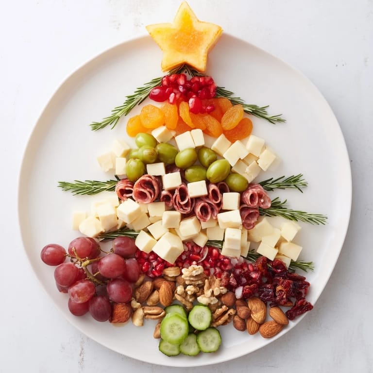 Save to Pinterest Celebrate the holiday season with a stunning and delicious Festive Holiday Tree Appetizer Platter. This vibrant treasure trove of cheeses, charcuterie, fresh fruits, nuts, and savory nibbles is artfully arranged in the shape of a festive tree, making it the centerpiece for any holiday gathering. Its colorful layers and inviting textures offer a delightful way to share good cheer and great taste with family and friends.