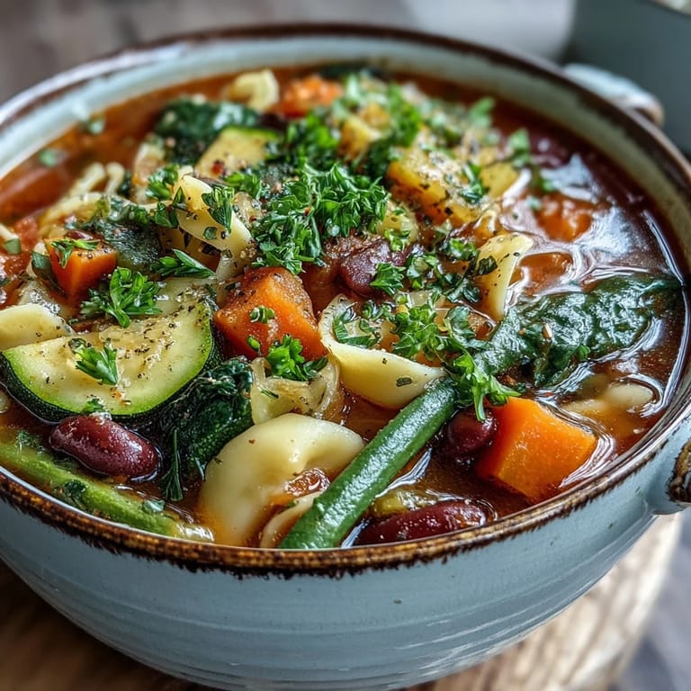 Save to Pinterest There's something almost meditative about chopping vegetables for minestrone on a quiet Sunday afternoon. My neighbor Maria taught me her version years ago, standing at her kitchen counter with the radio playing softly in the background, and I realized then that this soup isn't just about throwing ingredients together, it's about the rhythm of the knife hitting the board, the way the kitchen fills with the smell of sautéed onions and garlic, and how something so humble becomes deeply nourishing. Every time I make it now, I'm transported back to that moment, her hands guiding mine, her voice explaining why you never rush the soffritto.