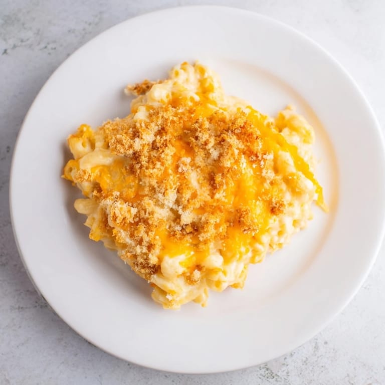 Save to Pinterest A creamy, nostalgic classic featuring tender elbow macaroni baked in a rich, cheesy sauce with a golden breadcrumb topping. Perfect for family dinners or gatherings.
