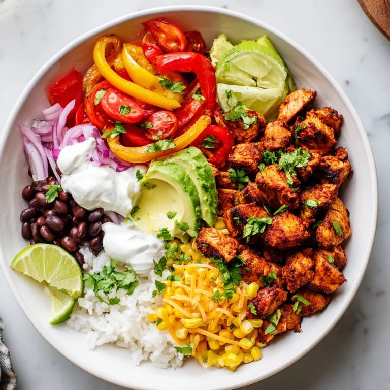 Save to Pinterest A vibrant, all-in-one Tex-Mex inspired meal featuring juicy spiced chicken, roasted vegetables, and all your favorite burrito toppings prepared on a single sheet pan for effortless cleanup and easy enjoyment.