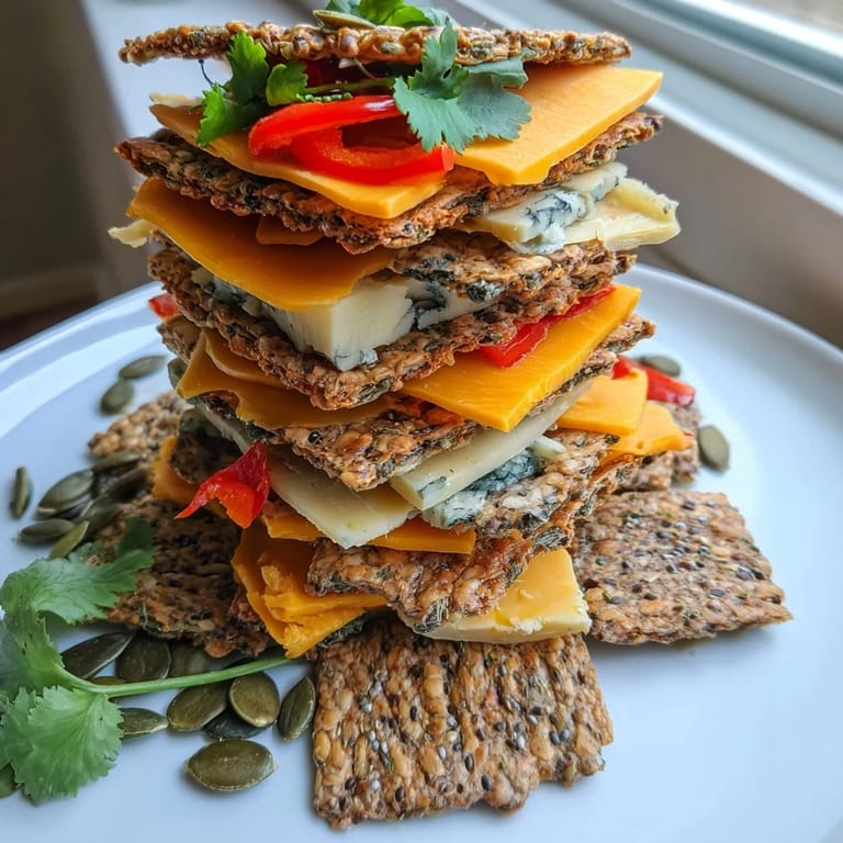 This is a foundation, not a rule. I've added thin slices of cured chorizo between layers for depth, swapped in sun-dried tomatoes for a tart note, even used different crackers to change the entire personality of a stack. The beauty is that you can build these stacks hours ahead, so they're perfect for parties where you want something that looks intentional but doesn't demand your attention while you're talking to guests. For gluten-free friends, substitute gluten-free crackers without changing anything else—the stacks will hold just as beautifully.