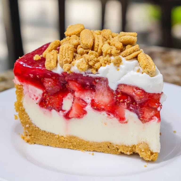 Save to Pinterest A luscious dessert that marries creamy cheesecake with the nostalgic flavors of strawberry shortcake, topped with a vibrant strawberry layer and a crunchy cookie crumble.